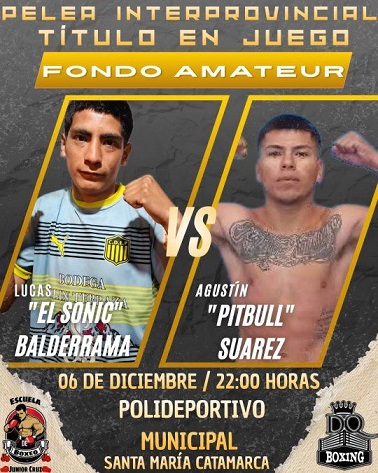 Con la organización de DQ Boxing de Diego Quiroga de Cafayate (Salta) y de la Escuela Junior Cruz, también fueron confirmados dos choques amateurs, con sendos cinturones en disputa.