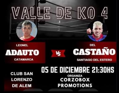 De estelar, en la divisional hasta 60 Kg y por un cinturón interprovincial, Leonel Adauto (DT Rodrigo Agüero) se enfrentará al santiagueño Alexis del Castaño, en tercer duelo donde el visitante tiene un 2-0 a favor.