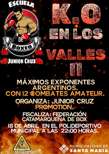 La Escuela de Boxeo Junior Cruz de Santa María confirmó para el 18 de abril -desde las 22- la concreción del festival "Ko en los Valles 2".