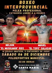 Con una pelea profesional y diez amateurs, la megavelada interprovincial que se hará este sábado 6 en la ciudad de Santa María confirmó su cartelera.